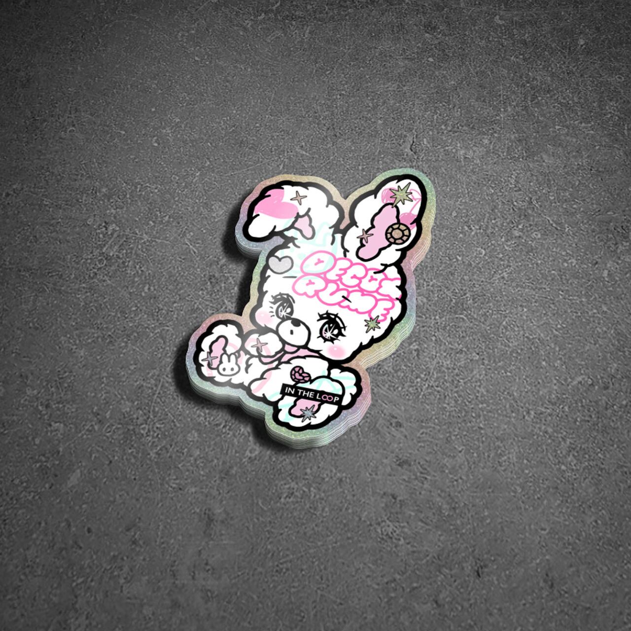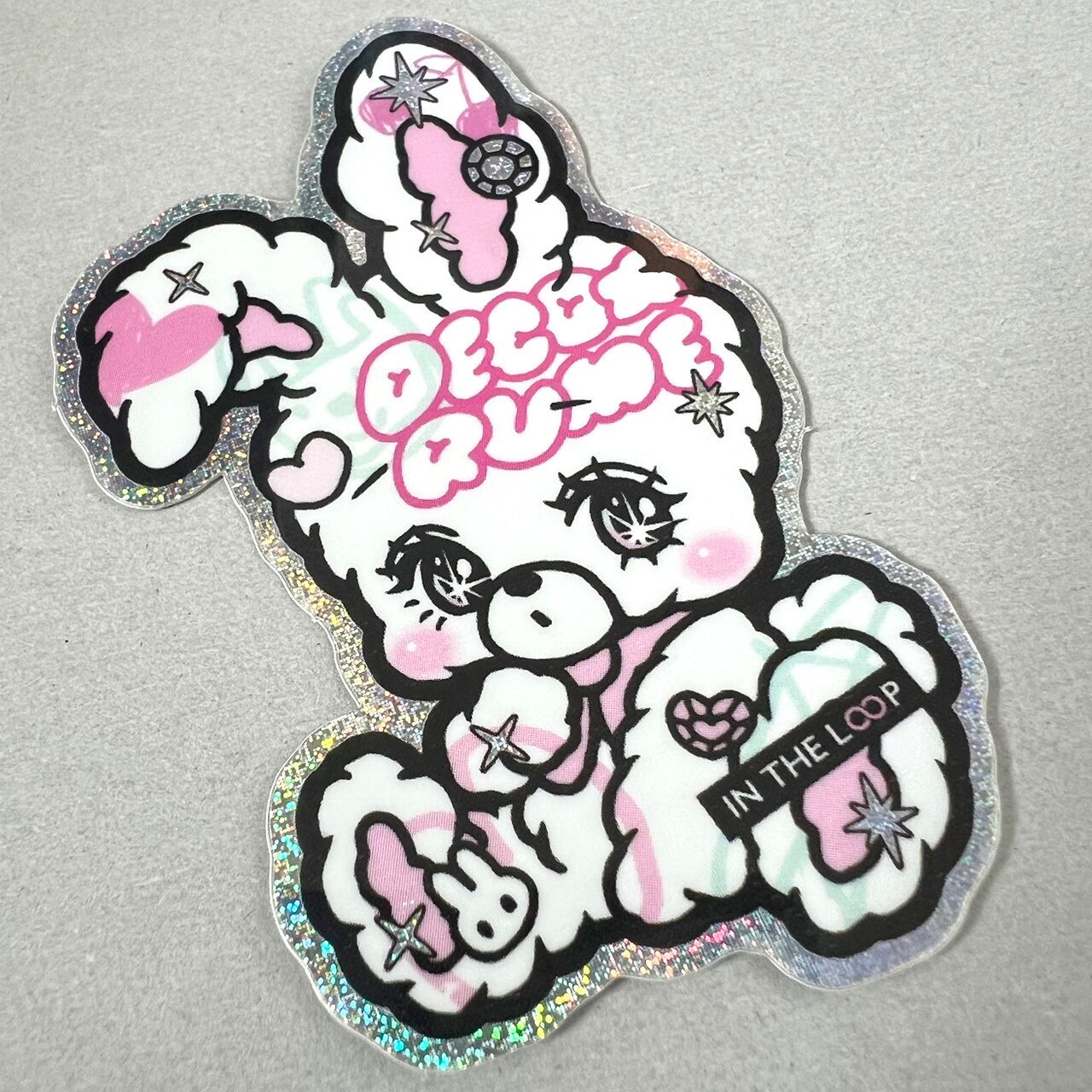 シルバーベースのメタリックなグリッターステッカーで印刷部分以外は粒子の細かい虹色のラメがキラキラと輝きます。
