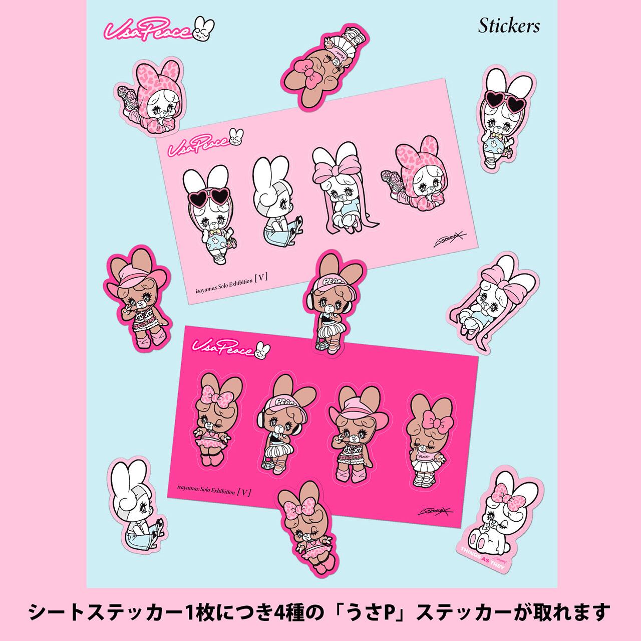 1枚につき4種の「うさP」を配置したシートステッカーです。